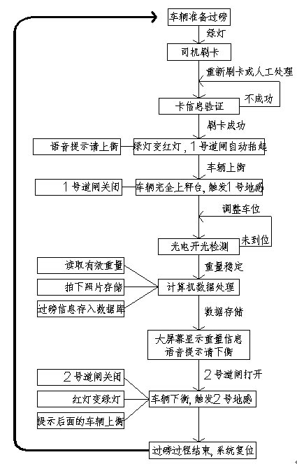 RFID卡自動稱重系統自動識別車輛車牌號碼,方便快捷。要求:場內對車輛管理較嚴格,車牌的完整度和清潔度。過磅原理流程如下: