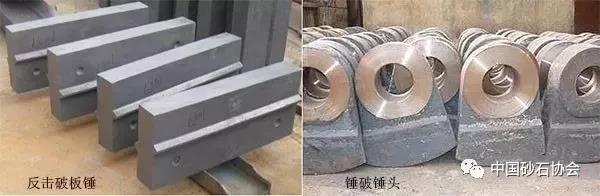 反擊破板錘的磨損常出現在迎向物料的一面,其金屬利用率可高達45%—48%。在破碎石灰石時,反擊破板錘磨損不嚴重,但在破碎花崗巖(硬度大,可用圓錐破)時,則需要不斷更換板錘。