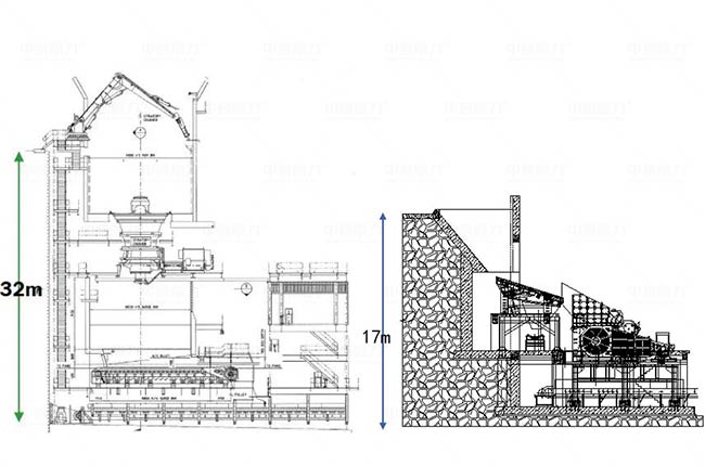 傳統旋回破和臥式旋回破基礎建設對比圖