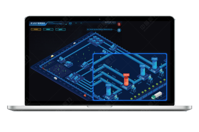 礦山設備智能化管理系統人機交互可視化操控界面,可以直觀看到現場工藝布局、設備布局、查看設備名稱、設備型號、運行狀態、實際運營時間等各類信息。管理者只需通過操控界面的按鈕就可實現一鍵啟停礦山設備,既可單獨控制,也可以一鍵控制,系統會按照設備啟停順序關停相應設備,告別了傳統閘刀和按鈕的控制方式。