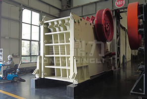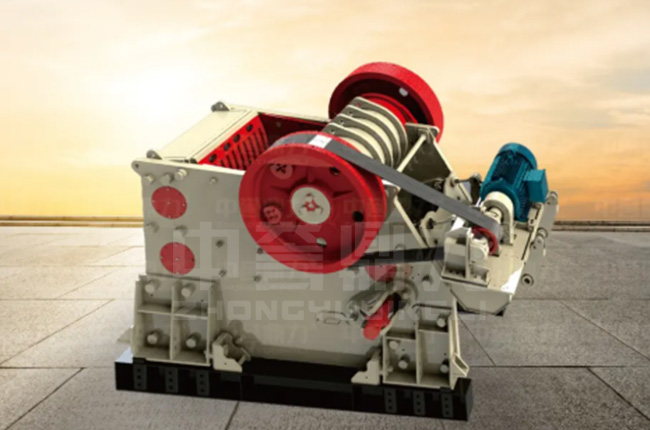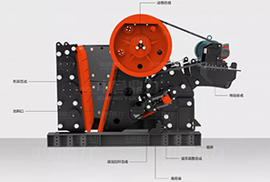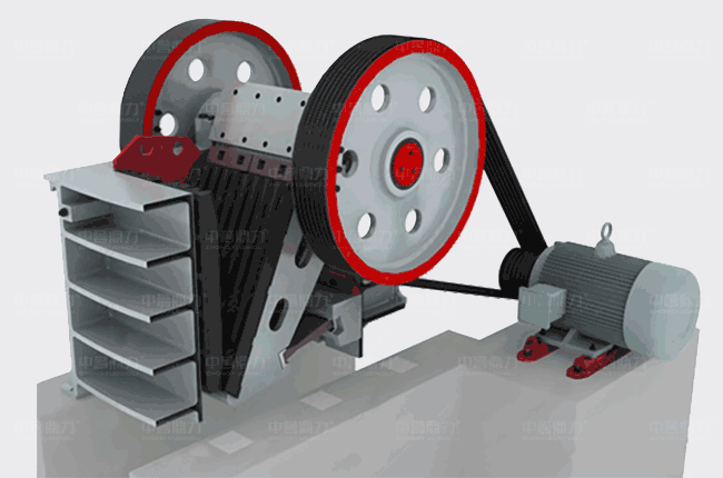 電機帶動皮帶跟皮帶輪,通過偏心軸讓動顎進行上下運動,當(dāng)動顎上升的時候,肘板會和動顎之間的夾角變大,從而推動動顎板往固定顎板接近,同時其中的物料會被壓碎或劈碎,達到破碎的目的,當(dāng)動顎下行時,肘板和動顎之間的夾角會變小,動顎板在拉桿、彈簧的作用下 ,離開固定顎板,同時已經(jīng)破碎的物料從排料口排出。