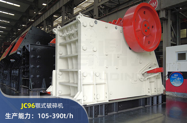 JC96顎式破碎機(jī)進(jìn)料口尺寸930×580mm,進(jìn)料粒度≤480mm,出料大小≤60mm,電機(jī)功率90kw,時(shí)產(chǎn)在390噸左右。