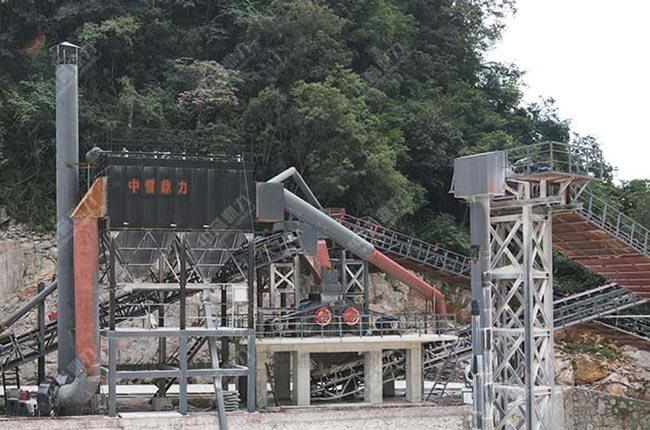 設備配置:振動給料機ZGC2050、重型錘式破碎機PCZ1620、整形式破碎機PC1220、雙轉子制砂機ZSJ1213、振動篩3YKQ2460、輸送機。