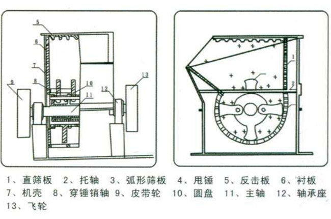 方箱破碎機(jī)的機(jī)架是三分體結(jié)構(gòu),主要打開(kāi)后背機(jī)殼,就可以進(jìn)行更換托軸、反擊板及襯板等檢修維護(hù)工作。