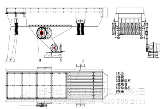 2.當物料通過槽體上的篩條時,較小的物料從篩條的縫隙間落下,能夠起到篩分的效果。