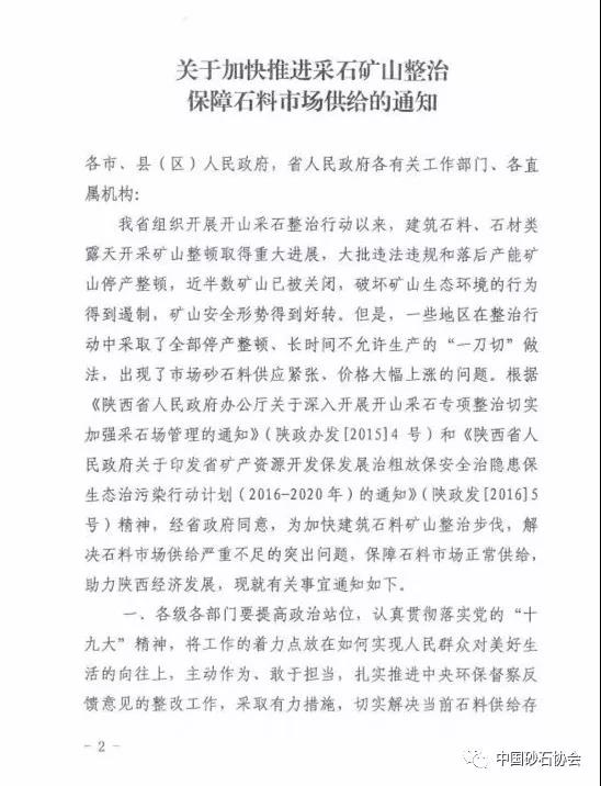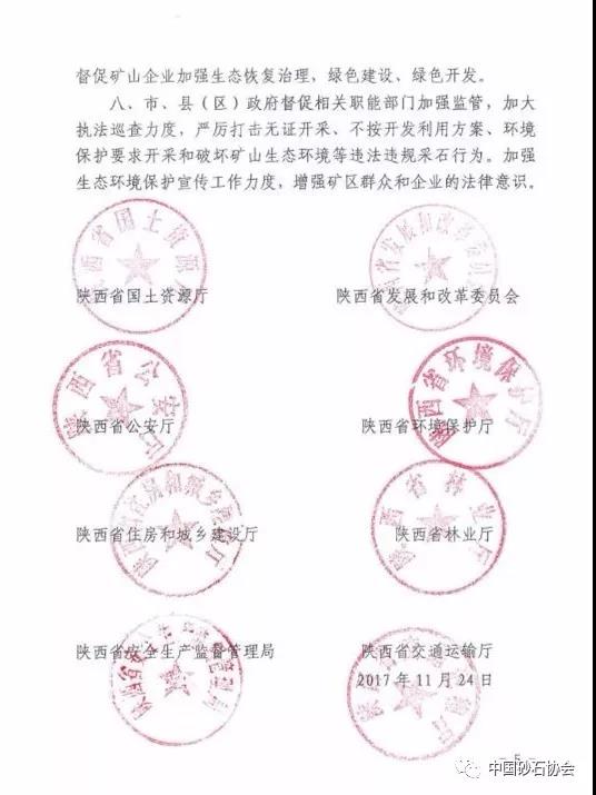 導讀:2017年11月24日,陜西省土資源廳、陜西省發展和改革委員會、陜西省公安廳、陜西省公安廳、陜西省環境保護廳、陜西省住房與城鄉建設廳、陜西省林業廳、陜西省安生產監督管理局和陜西省交通運輸廳八部門聯和發布《關于加快推進采石礦山整治 保障石料市場供
