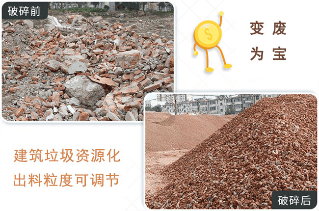 建筑垃圾中較多的就是混凝土塊了,是路面混凝土塊,這些混凝土塊能夠干什么呢?怎樣發揮它的剩余價值?能夠用一臺建筑垃圾粉碎機做出粉碎,制成不同大小的小石子或砂料,制作環保磚、復合骨料等,又一次運用于建筑、公路、建設基礎設施等。