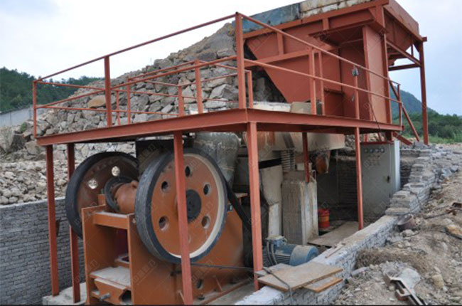 鄂式破碎機的電機直接驅動的是偏心重塊,開啟時只需克服偏心重塊的不均衡靜力矩才能,粉碎腔內巖石的多少、巖石的受力性能大小、巖石能不能被破碎均不影響電機驅使不均衡重塊的正常工作,因此可達成負荷下的開啟、停車與過負荷工作。