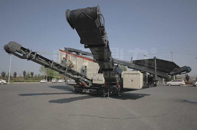 履帶式移動篩分機區別于傳統振動篩配置,不需要基礎建設固定作業,將篩分機設備安裝在船型鋼架基礎上,采用履帶底盤為載體,可移動性強,可以切換場地。以下以中譽鼎力廠家生產履帶式移動篩分機為例,對履帶篩分機的構造、特點及動力配置進行介紹。