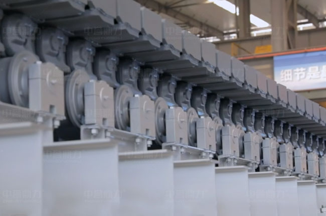 中譽鼎力板鏈式給料機鏈板采用強度大、硬度高、韌性好的合金鋼壓制而成,采用的是坦克鏈,安裝維修方便,工作噪聲小,可高速運動,能很好匹配變頻裝置調(diào)節(jié)喂料速度。