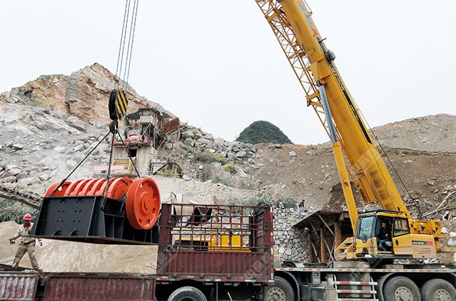 上面是重型錘式破碎機(jī)從廠家到達(dá)安裝現(xiàn)場(chǎng)的圖片,從圖中可以看到,安裝地基已經(jīng)建好,設(shè)備的主體部件正在吊裝。