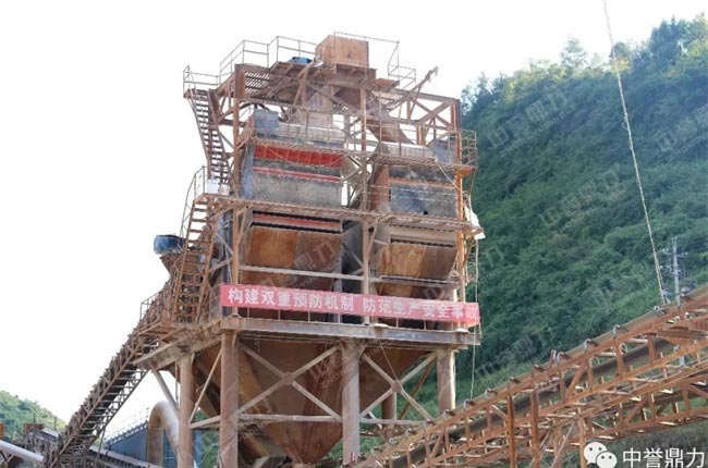 該項目2017年11月開工建設,選用ZG1538振動給料機、PCZ1615重錘式破碎機、ZSJ1218雙轉子制砂機、2YKZ3070及4YKZ3070振動篩等設備。
