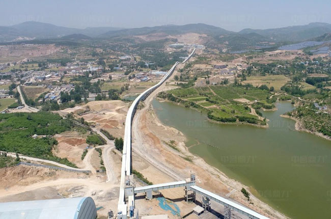 4、半成品混合料通過兩公里長的皮帶長廊輸送到省道旁邊的篩分銷售區域,山下篩分銷售。
