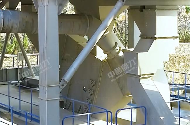 05料通過400提升機進入封閉皮帶機,進入沖擊破整形制砂,然后進入振動篩控制粒型,篩下料進入閉路循環選粉系統(先進靜態選粉機再進動態選粉機),篩上料通過提升機再次返回制砂機成型制砂。