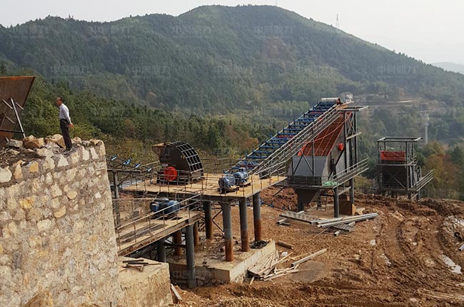 湖南華泰礦業時產300噸石灰石破碎生產線2018年投產,采用一次成型的方案,主要設備的配置有DLZG1238振動喂料機、DLPCZ1512重型錘式反擊破碎機、DLPC0910錘式整形機、DL2YK2470振動篩2臺。