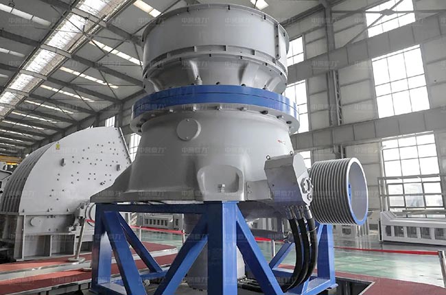 CJS600單缸液壓圓錐破的給料粒度275mm,出料粒度為13-51mm,配電機功率為615Kw,時產能力在162-662噸之間,有粗中細等八種破碎腔型可選,可用于砂石生產線用于粗、中、細等破碎作業。