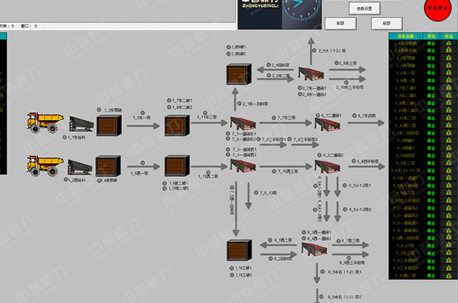 實現砂石收售環節自動化完成,砂石骨料裝車環節要有自動裝車與人工控制裝車兩種裝車方式,要盡量減少人員參與,避免作弊行為的發生,對于石料生產線設備要一鍵控制開關機,并且要對設備的用電狀況,轉速,產量,設備運行狀態進行監控。