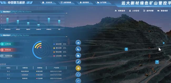 中譽(yù)鼎力綠色礦山管控平臺(tái)(智慧砂石監(jiān)管平臺(tái)),通過(guò)三維技術(shù)實(shí)時(shí)展現(xiàn)廠區(qū)全貌,實(shí)現(xiàn)對(duì)砂石線生產(chǎn)、設(shè)備運(yùn)行、環(huán)保檢測(cè)等數(shù)據(jù)采集、集中規(guī)范展現(xiàn),進(jìn)而實(shí)現(xiàn)對(duì)砂石廠信息化、數(shù)字化、自動(dòng)化深度融合,使整個(gè)礦山具有自我學(xué)習(xí)、分析和決策能力,達(dá)到砂石線的隱患、故障或風(fēng)險(xiǎn)的預(yù)警及防治。