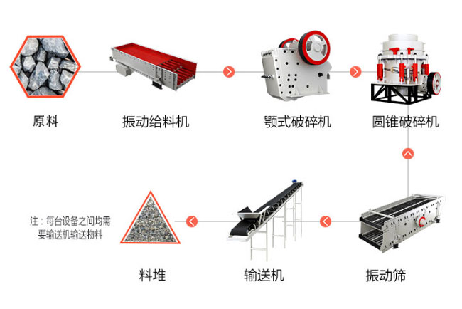 2、頭破:建筑垃圾先歷經震動喂料機進入頭破機械pe顎式破碎機中,pe顎式破碎機能把大塊物料解決成小塊,以方便進入二級石頭機機械中。