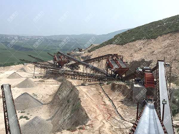 根據(jù)客戶需求及公司技術(shù)指導,為客戶了兩段破碎,前段采用顎式破碎機進行細碎,加工成后進入中轉(zhuǎn)料倉,為雙轉(zhuǎn)子制砂機提供原料,經(jīng)沖擊破生產(chǎn)出粒型、級配合理的成品砂,用于該集團公司的混凝土攪拌站。
