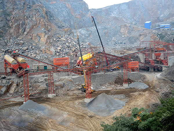 機(jī)械配合:2臺(tái)HX-07碎砂機(jī)、2臺(tái)PE1200-1500顎破、2臺(tái)HP噸300液壓圓錐破碎機(jī)、篩機(jī)等